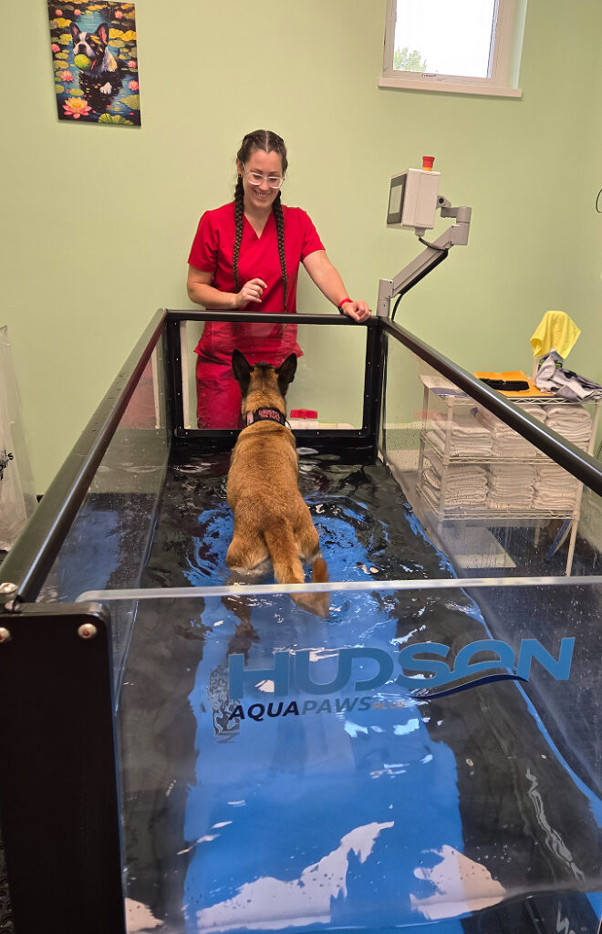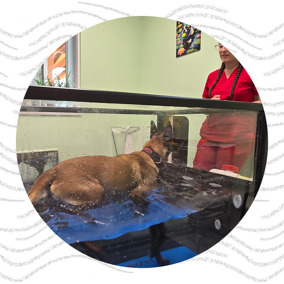 Our rehabilitation services, including pet underwater treadmill therapy, are offered by referral only. If you believe your pet may benefit from hydrotherapy, please speak with your veterinarian about initiating a referral.